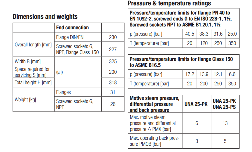Thông số kỹ thuật bẫy hơi Gestra UNA 25