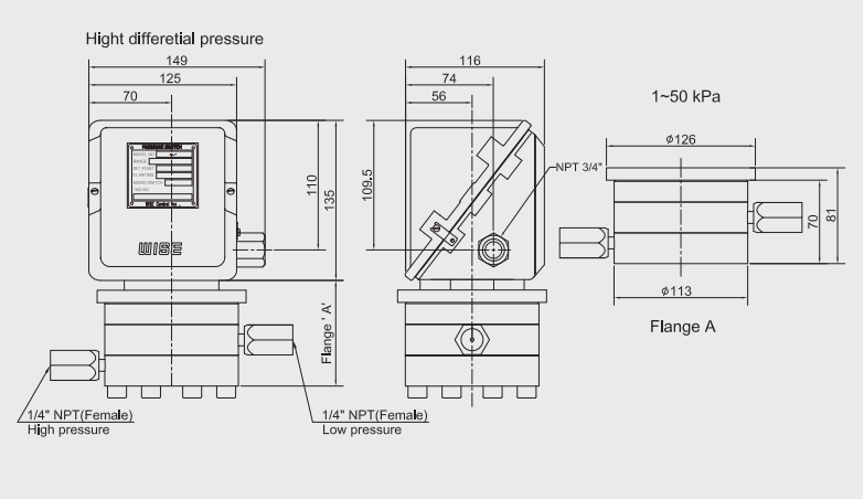 - Phạm vi vi sai thấp đến trung bình: 1 kPa ~ 0.4 MPa.