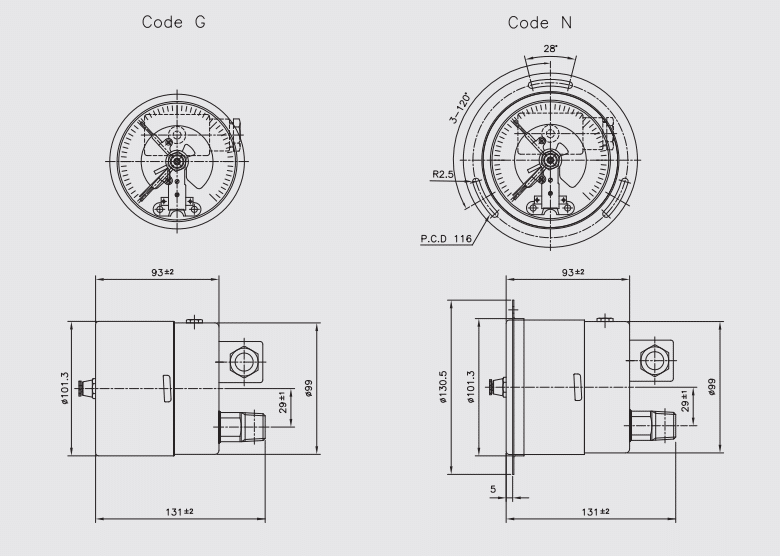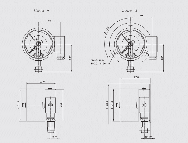 | Ống Bourdon | 316SS: C-type (<10 MPa), Helical (≥10 MPa) |