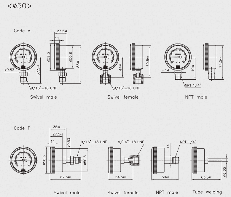 | Loại ống Bourdon | C-type (<6 MPa) |
