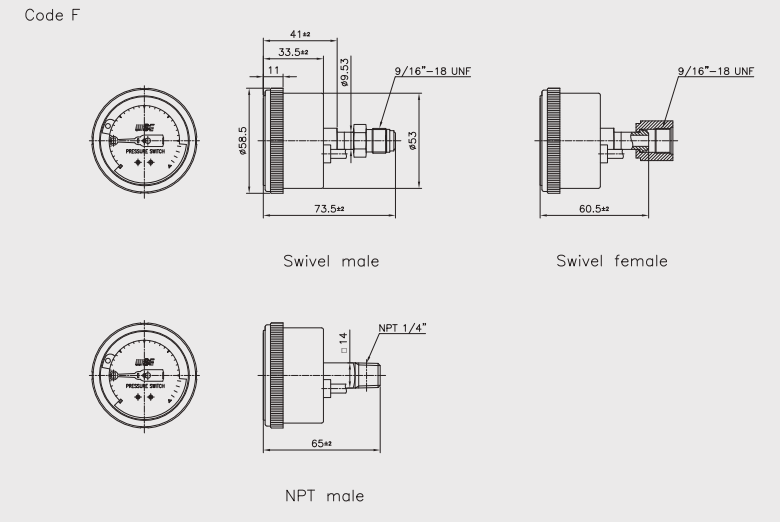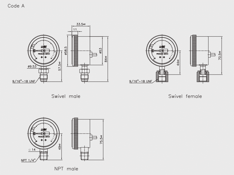 - Kết hợp đo áp suất (gauge) + công tắc (switch) trong 1 thiết bị (P841: high alarm, P842: high+low, P843: low alarm).