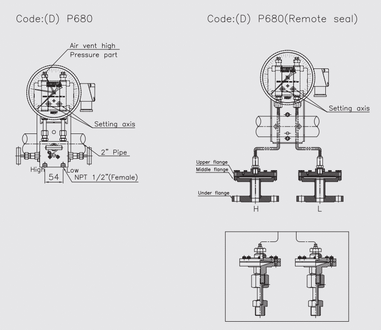 Đồng hồ chênh áp Wise P680 được thiết kế để đo áp suất chênh lệch từ 25 kPa đến 2,0 MPa ở áp suất tĩnh 10 MPa. Một bộ hai ống xếp bằng thép không gỉ được gắn trên một cân bằng lực cho phép đọc trực tiếp áp suất chênh lệch thực tế. Các tiếp điểm sử dụng công tắc lưỡi gà cho các ứng dụng cảnh báo và điều khiển.
