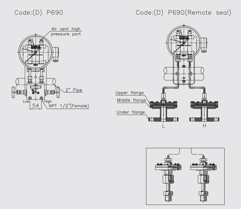 | Dải đo chênh áp | 0 ~ 25 kPa đến 0 ~ 0.25 MPa (P691) |