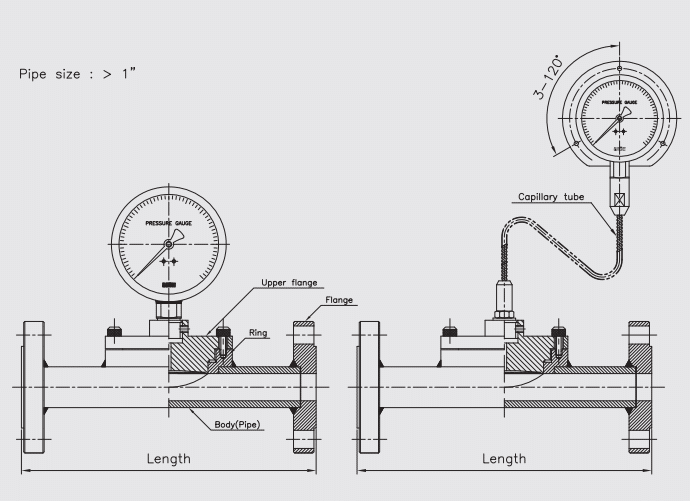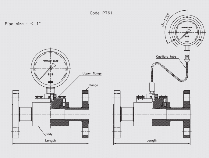 | Kiểu đồng hồ | Đồng hồ áp suất với màng ngăn inline |