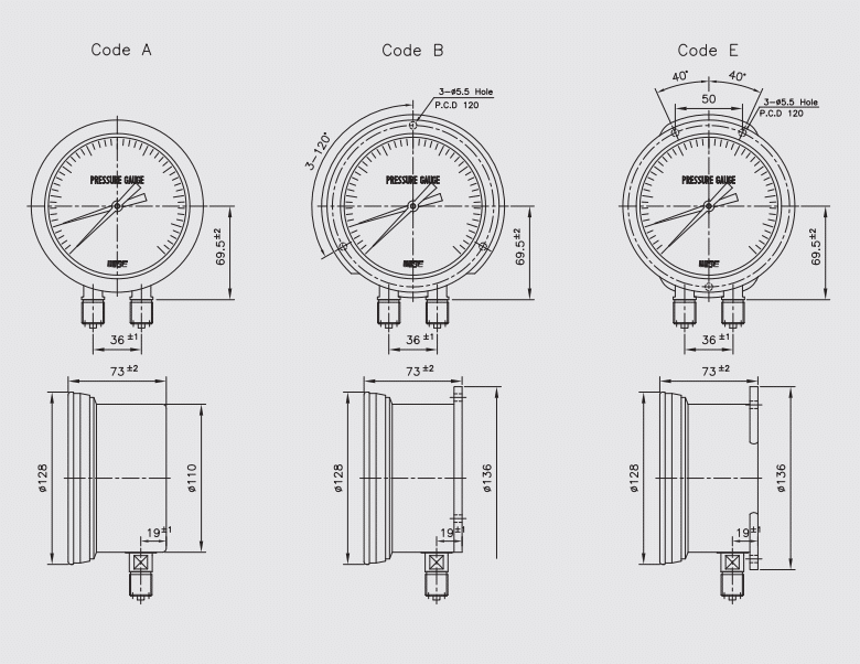 - Hai kim chỉ thị quay độc lập và hiển thị hai giá trị áp suất trên cùng một mặt số.