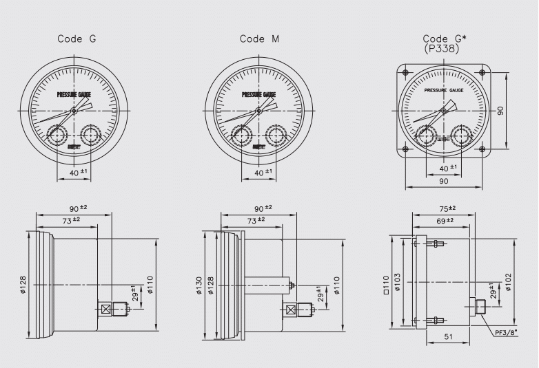 Kích thước của Đồng hồ đo áp suất kép Wise P336, P338