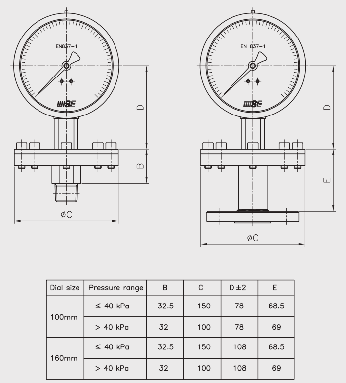 | Tên sản phẩm | Đồng hồ đo áp suất màng Wise |