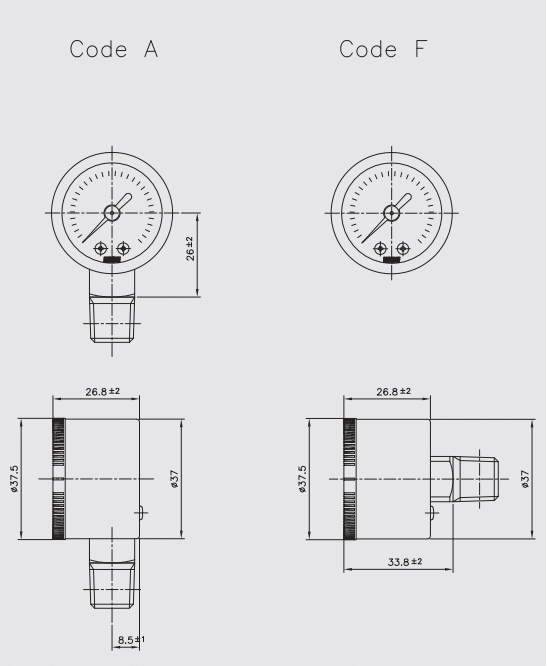 | Loại | Đồng hồ áp suất thu nhỏ | Đồng hồ áp suất thu nhỏ |
