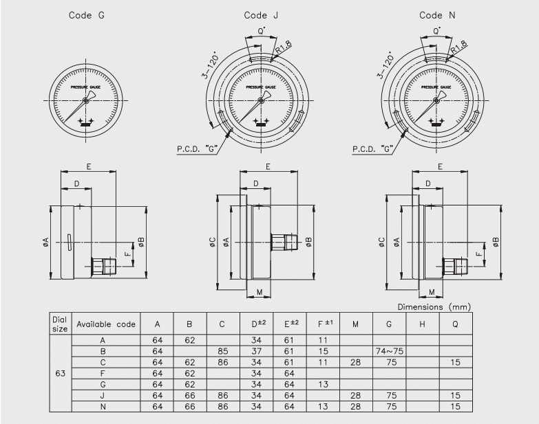 | Phạm vi đo | 63 & 80 mm: -0.10 đến 0100 MPa (hoặc bar/kPa) |