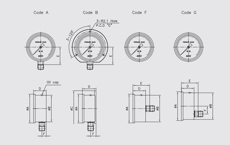 | Kết nối ren | 63 mm: ¼”; 80 mm: ¼”, ⅜” ; 100 mm: ¼”, ⅜”, ½” (PT, NPT, PF, UNF, BSP…) |