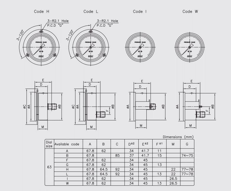 | Tên sản phẩm | Đồng hồ đo áp suất Wise |