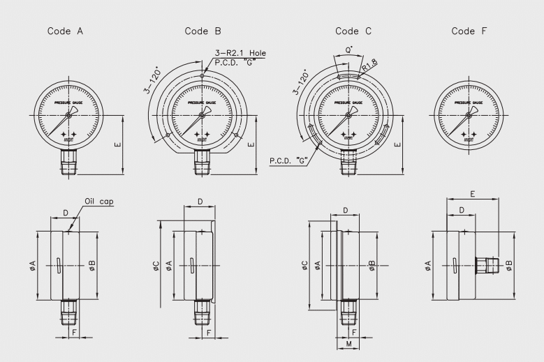 | Nhiệt độ làm việc | Ambient: -20 ~ +65°C (glycerin) / -40 ~ +65°C (silicone) |