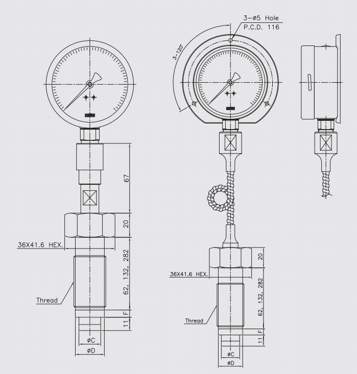 | Kiểu đo | Đồng hồ áp suất có màng ngăn (diaphragm seal) |