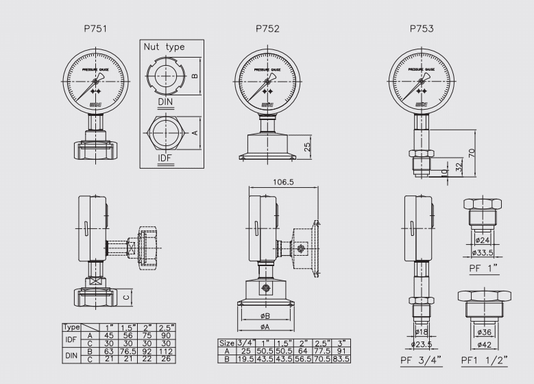 | Loại | Đồng hồ đo áp suất vệ sinh (Sanitary pressure gauge) |