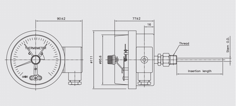 Đồng hồ nhiệt độ tiếp điểm điện Wise T750 kiểu tiếp xúc được lắp đặt với tiếp điểm điện được điều khiển bằng kim chỉ. Nó cung cấp chức năng đóng hoặc mở mạch điện bằng điểm đặt thủ công. Loại này thích hợp sử dụng khi cần tín hiệu (báo động âm thanh hoặc hình ảnh) để điều khiển điện trở hoặc bất kỳ ứng dụng nào khác có rơle và tiếp điểm phụ trợ.