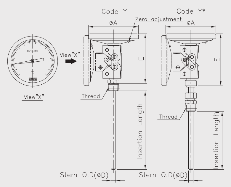 | Model | T190 – Process industry bimetal thermometer with adjustable stem |