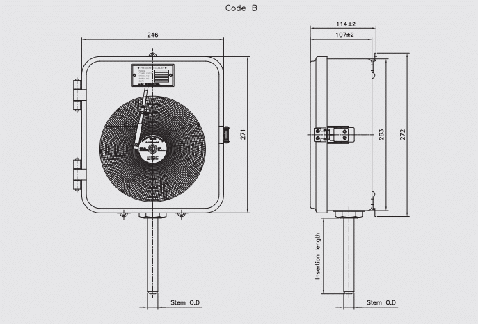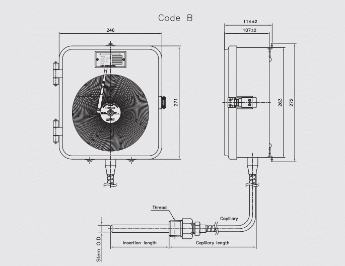 - Case Compensation (bù nhiệt độ vỏ máy): Có cơ chế bù đặc biệt bên trong case (thường dùng bimetal hoặc phần bù riêng) để triệt tiêu lỗi do nhiệt độ môi trường xung quanh vỏ máy và capillary thay đổi → đảm bảo độ chính xác ±2% dù môi trường nóng/lạnh.