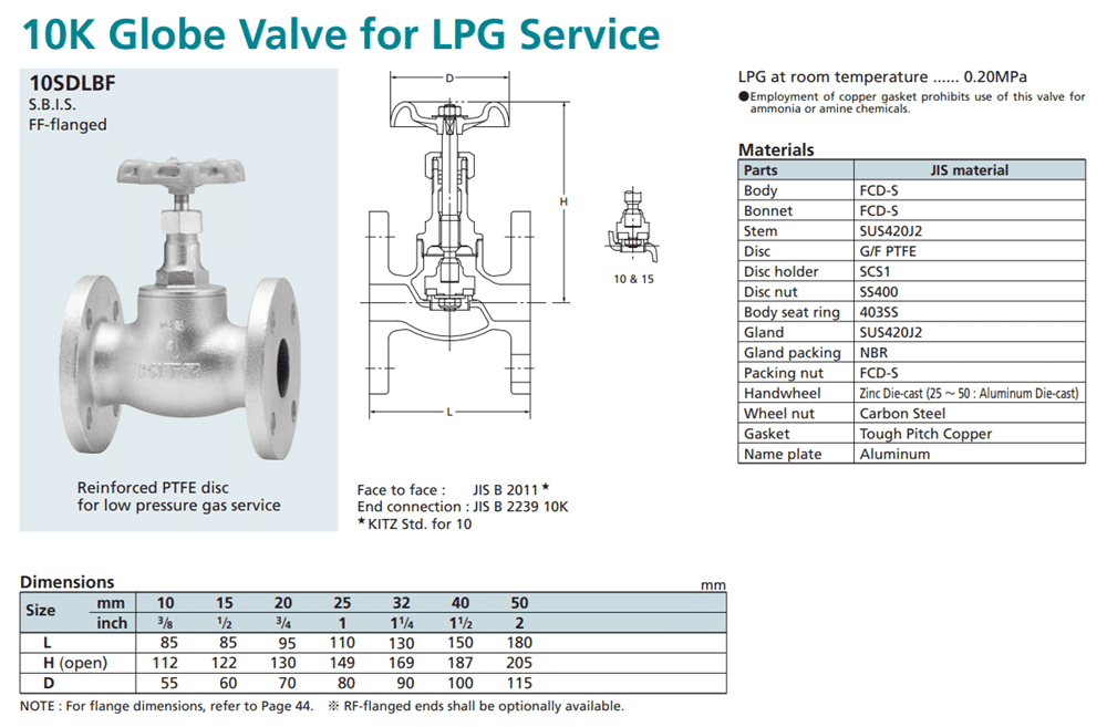 | Tên sản phẩm | Van cầu KITZ JIS 10K |