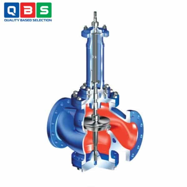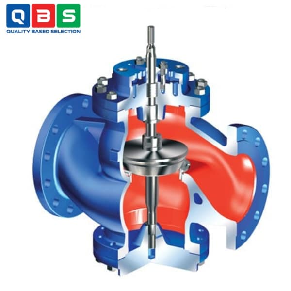 - Actuator (pneumatic hoặc electric) điều khiển thân van (stem) di chuyển lên/xuống.