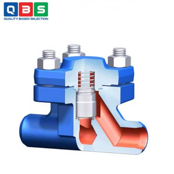 - Khi dòng chảy ngược hoặc dừng: Lò xo thép không gỉ (stainless steel spring) đẩy nút van trở về vị trí đóng, ép chặt vào ghế van bằng Stellite (vật liệu cứng chống mài mòn) → van đóng kín, ngăn dòng ngược hoàn toàn (metallic sealing, không rò rỉ).